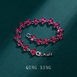 سوار مجوهرات كلاسيكي خفيف فاخر 17 روبي صناعي بيضاوي أحمر كوروندوم نسائي