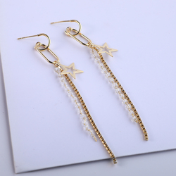بيع بالجملة بالجملة أقراط شرابة للنساء عصرية مطلية بسلسلة ذهبية طويلة كورية مطلية بالروديوم