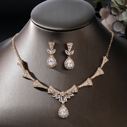 طقم قلادات فاخرة مطلية بالذهب ، مجوهرات زركون كلاسيكية للنساء لحفلات الزفاف والخطوبة ، هدية مستوحاة من دبي للعروس