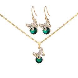 Mode Verguld Messing Sieraden Set Voor Vrouwen Smaragd Zirkoon Hanger Vlinder Ketting En Oorbellen Voor Feest En Cadeau