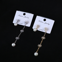 Trendy Asymmetrische Hangende Ketting Statement Oorbellen Met Zirkoon Mode Parel Hanger Voor Dames Messing Materiaal