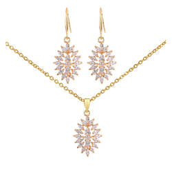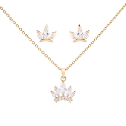 Groothandel Mode Vergulde Messing Kubieke Zirkoon Sieraden Set Voor Vrouwen Voor Bruiloft & Geschenken-Kroon Hanger Ketting & Oorbellen