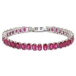 Lichte Luxe Retro Sieraden Armband 17Cm Synthetische Robijn Ovaal Rood Korund Tennisarmband Dames